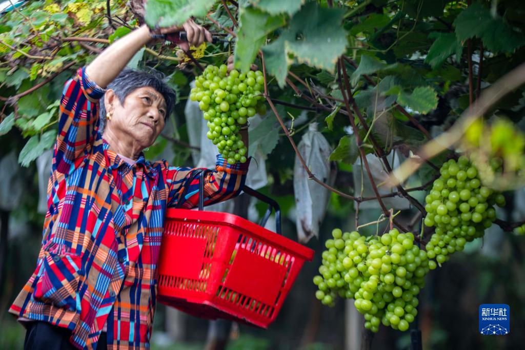 9月23日,果農在江蘇省泰州市姜堰區顧高鎮塘橋村天地農業(yè)園采摘葡萄。