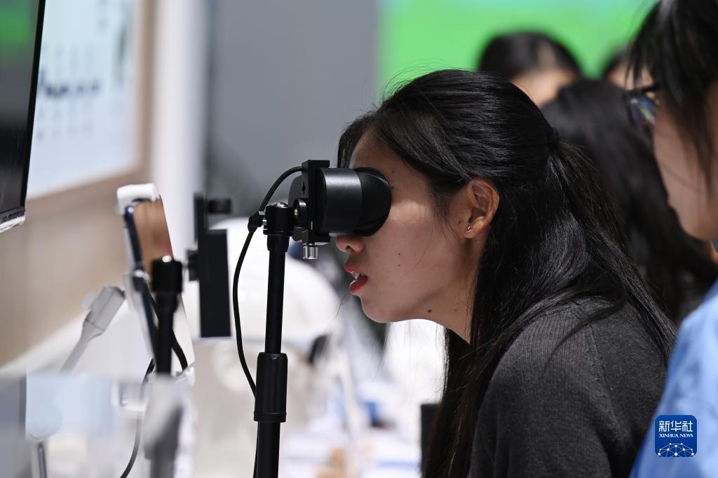 9月22日,觀(guān)眾在2023世界制造業(yè)大會(huì )集成電路與新型顯示展區體驗一款VR眼鏡。