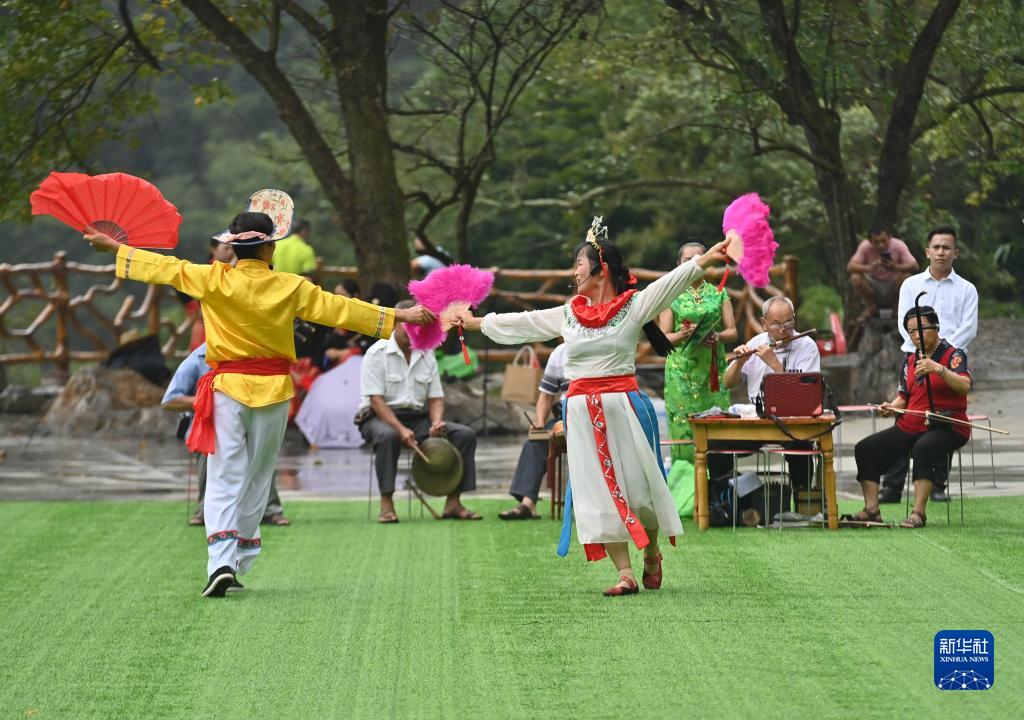 9月23日,在柳州市融安縣東起鄉崖腳村銅板屯,新建的民族文化同心廣場(chǎng)吸引周邊群眾前來(lái)表演節目。