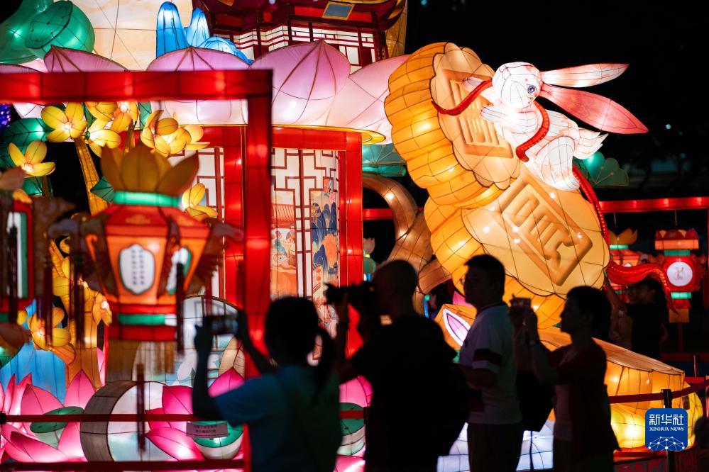9月23日,人們在香港維多利亞公園參觀(guān)中秋彩燈會(huì )。
