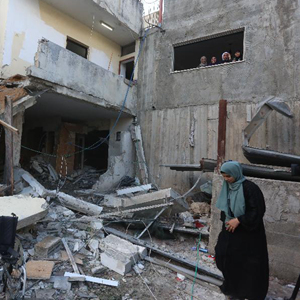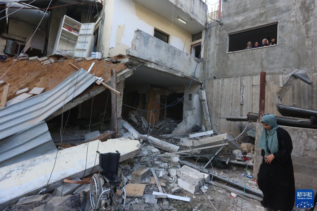 9月24日,在約旦河西岸城市圖勒凱爾姆,巴勒斯坦人在沖突后查看受損建筑。