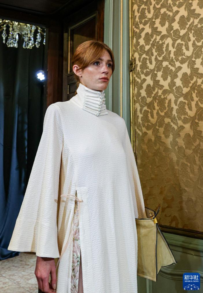 9月23日,模特在意大利米蘭時(shí)裝周上展示楚雄彝繡女裝。