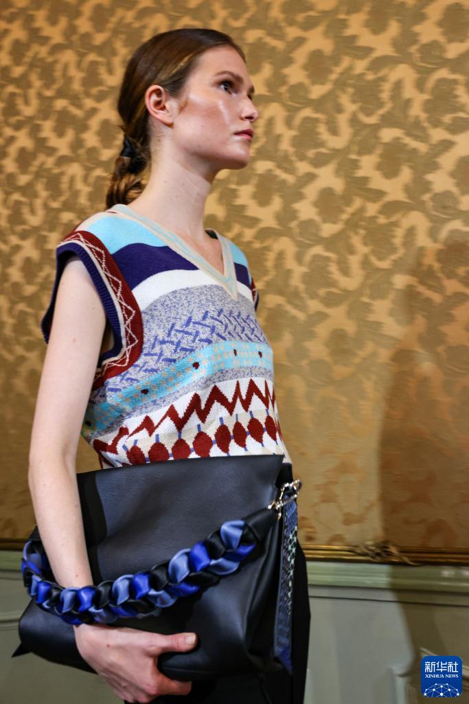 9月23日,模特在意大利米蘭時(shí)裝周上展示楚雄彝繡女裝。