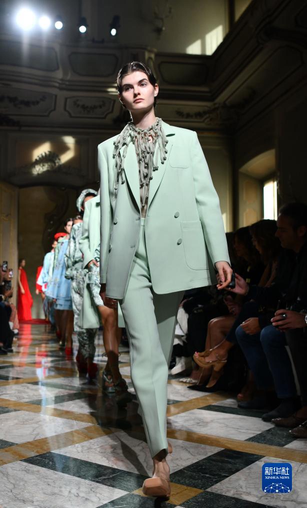9月24日,模特在意大利米蘭時(shí)裝周上展示含有貴州苗繡元素的設計時(shí)裝。