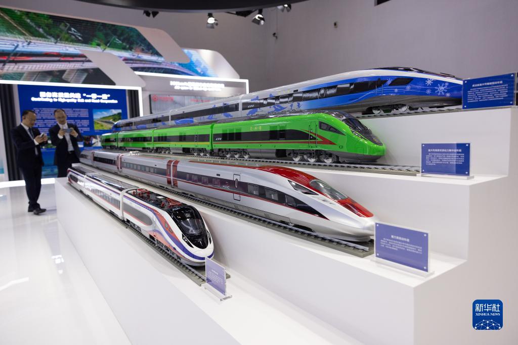 中國鐵道科學(xué)研究院集團有限公司展示的多款動(dòng)車(chē)組模型(9月25日攝)。