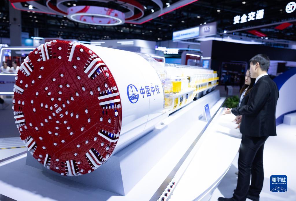 9月25日,參觀(guān)者在高加索號盾構機模型前交流。