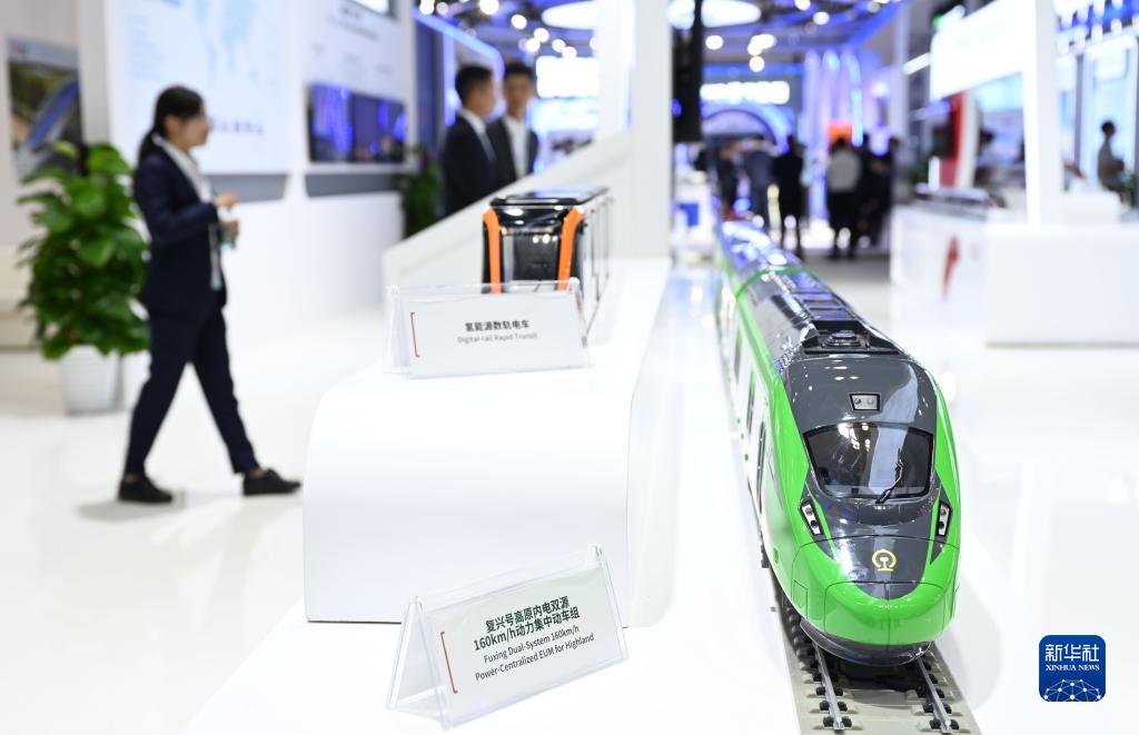 這是展出的復興號高原內電雙源160km/h動(dòng)力集中動(dòng)車(chē)組(9月25日攝)。