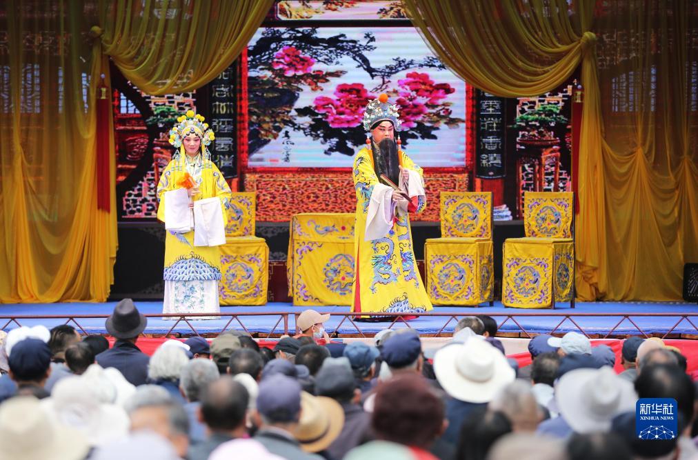 演員在甘肅省定西市體育公園演唱秦腔經(jīng)典傳統劇《打金枝》(9月19日攝)。
