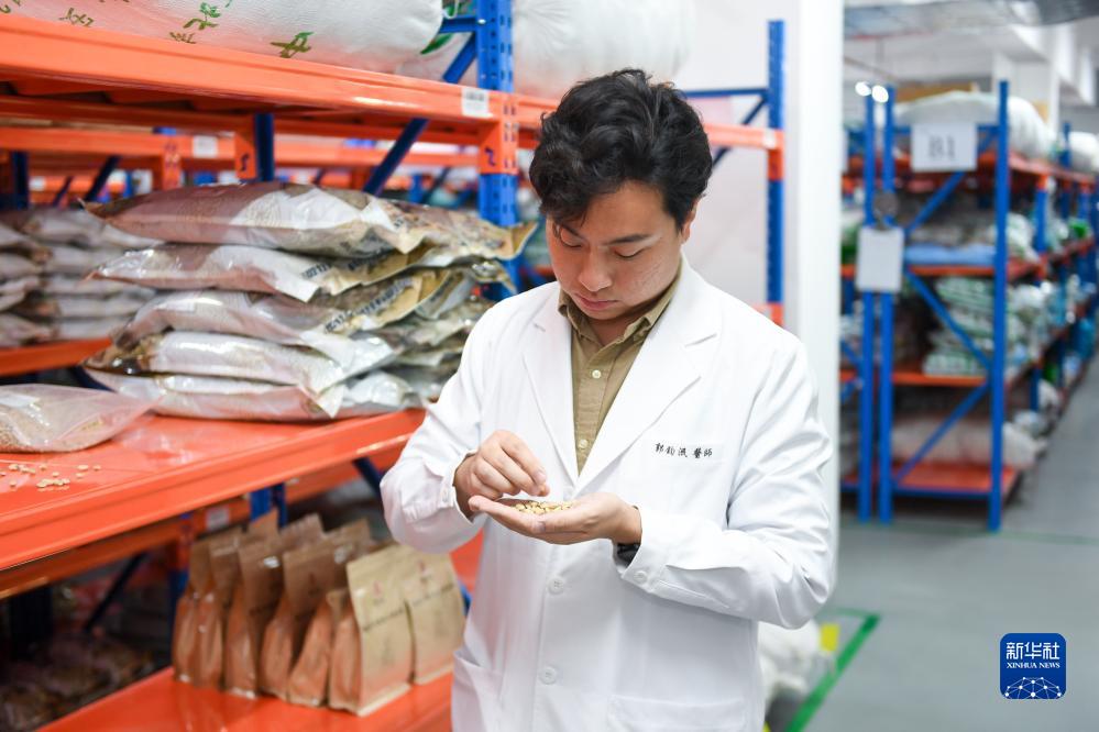 9月4日,在深圳光明國際中醫藥港的藥材儲備基地查看藥品情況。