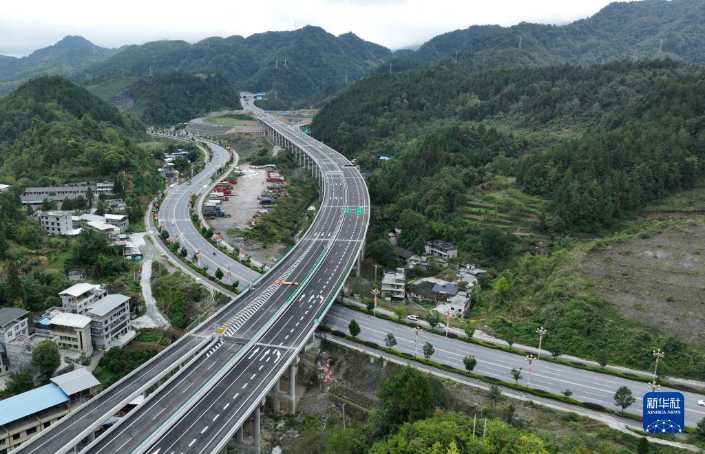 這是9月25日拍攝的湖北省恩施土家族苗族自治州境內的張南高速湖北宣咸段(無(wú)人機照片)。