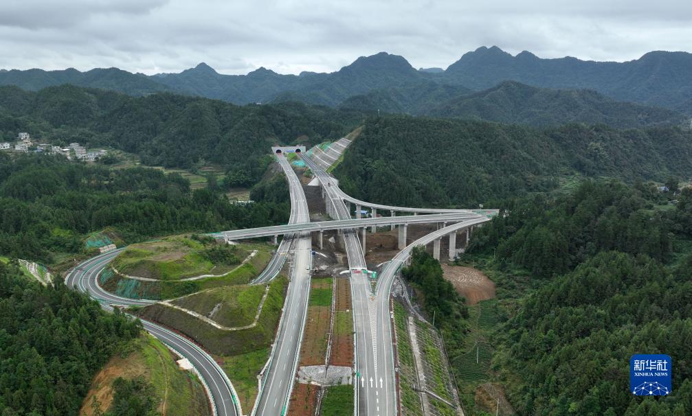 這是9月25日拍攝的湖北省恩施土家族苗族自治州境內的張南高速湖北宣咸段三胡互通(無(wú)人機照片)。