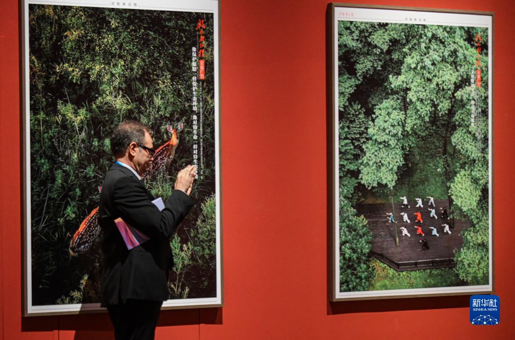 9月26日,在新疆美術(shù)館,參觀(guān)者在拍攝展出的攝影作品。