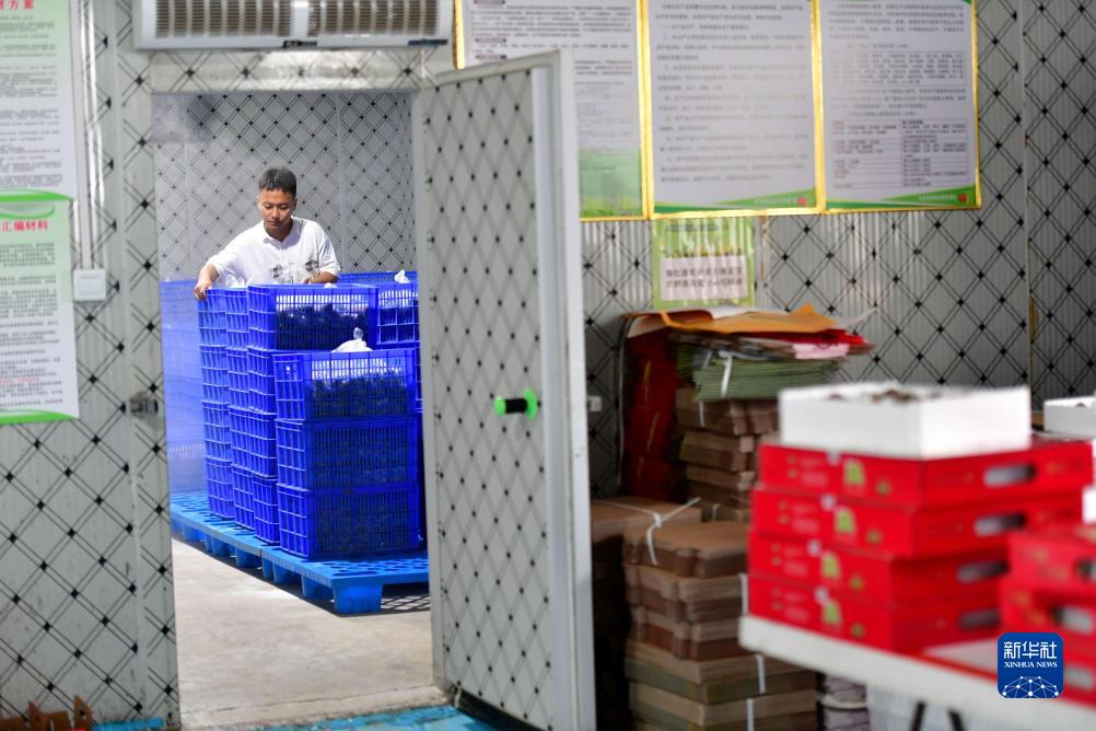 9月26日,段鵬飛在冷庫里擺放獼猴桃。