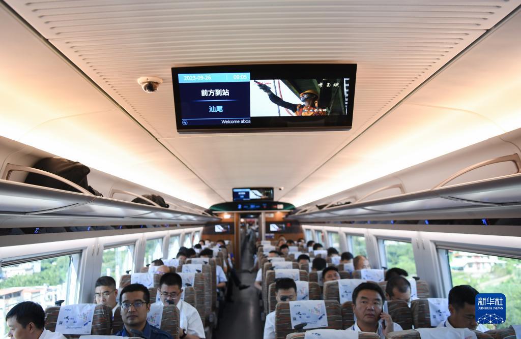 9月26日,人們乘坐廣汕高鐵首發(fā)列車(chē)。