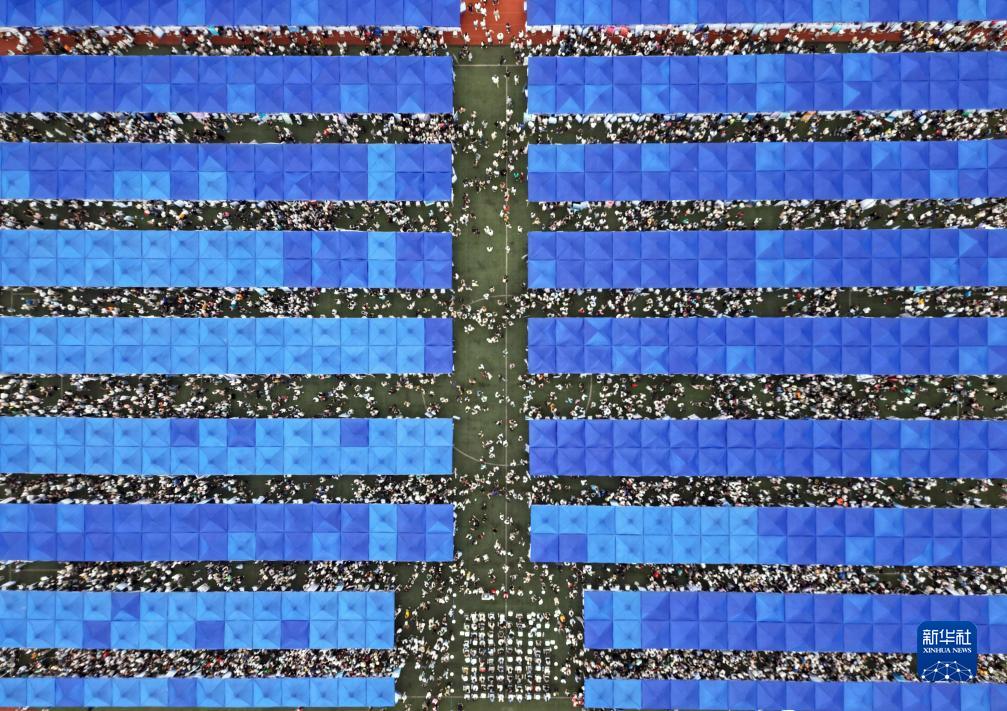 9月26日在上海建橋學(xué)院體育場(chǎng)拍攝的招聘會(huì )現場(chǎng)(無(wú)人機照片)。