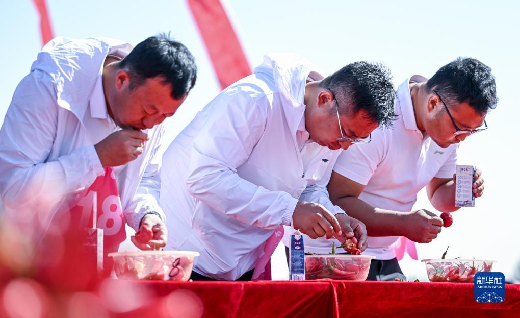 9月26日,選手參加吃辣椒大賽。