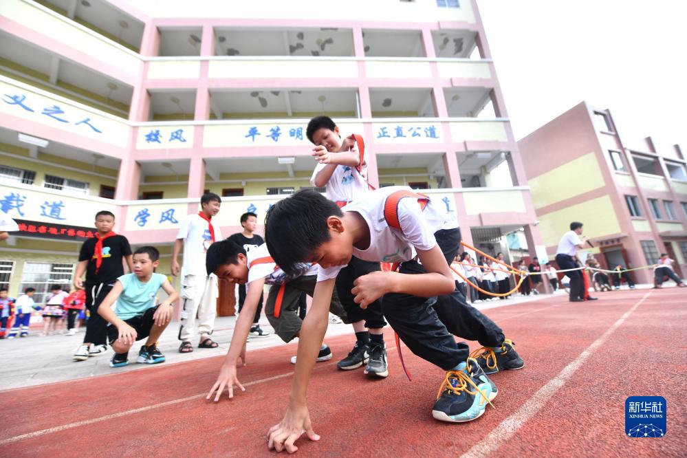 9月26日,在梧州市長(cháng)洲區古道小學(xué),學(xué)生們在大課間進(jìn)行“大象拔河”。