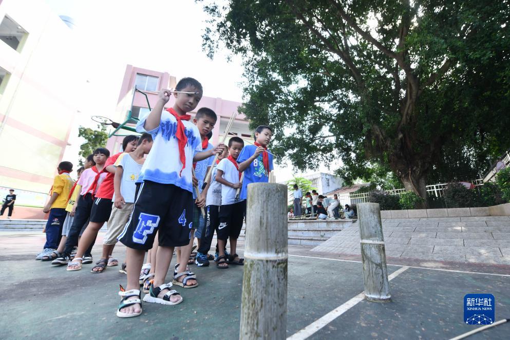 9月26日,在梧州市長(cháng)洲區古道小學(xué),學(xué)生們在大課間練習投壺。