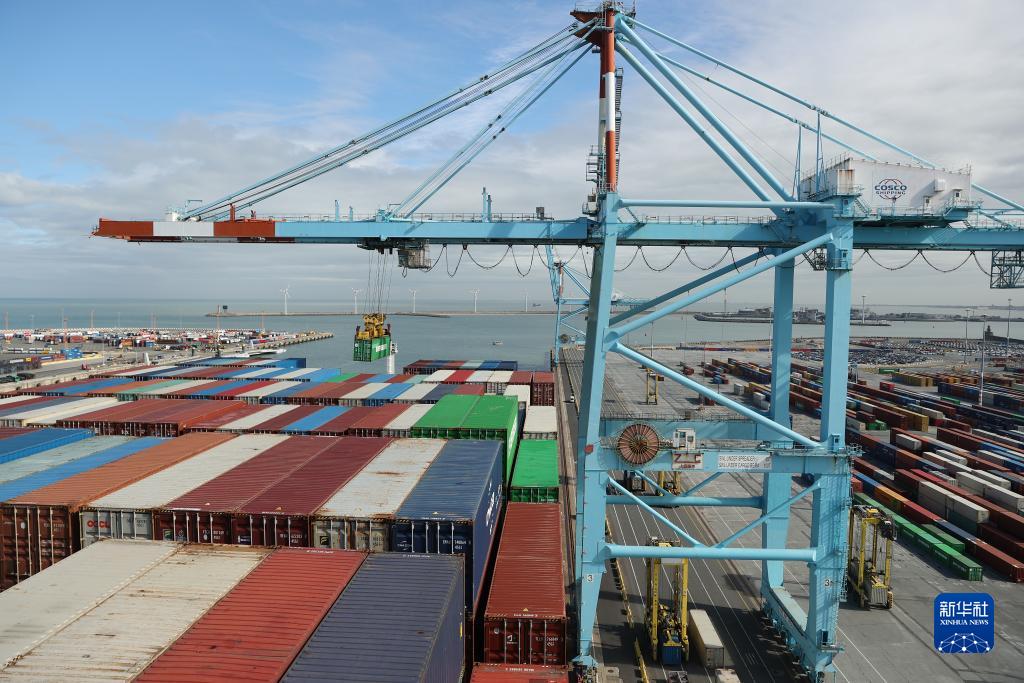 這是9月25日在比利時(shí)安特衛普-布魯日港拍攝的中遠海運(港口)澤布呂赫碼頭。