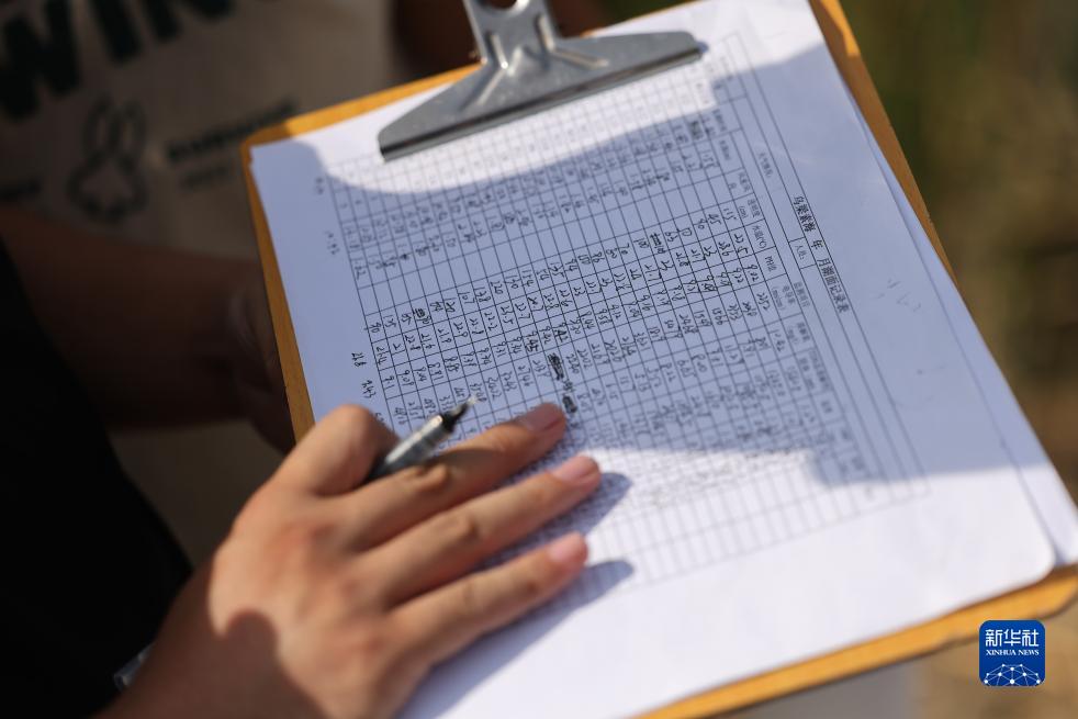 9月14日,武蓉查看烏梁素海水質(zhì)監測記錄表。