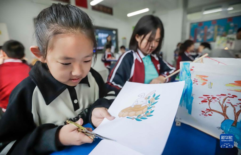 9月27日,河北省遵化市第六實(shí)驗小學(xué)的學(xué)生在制作中秋燈籠。