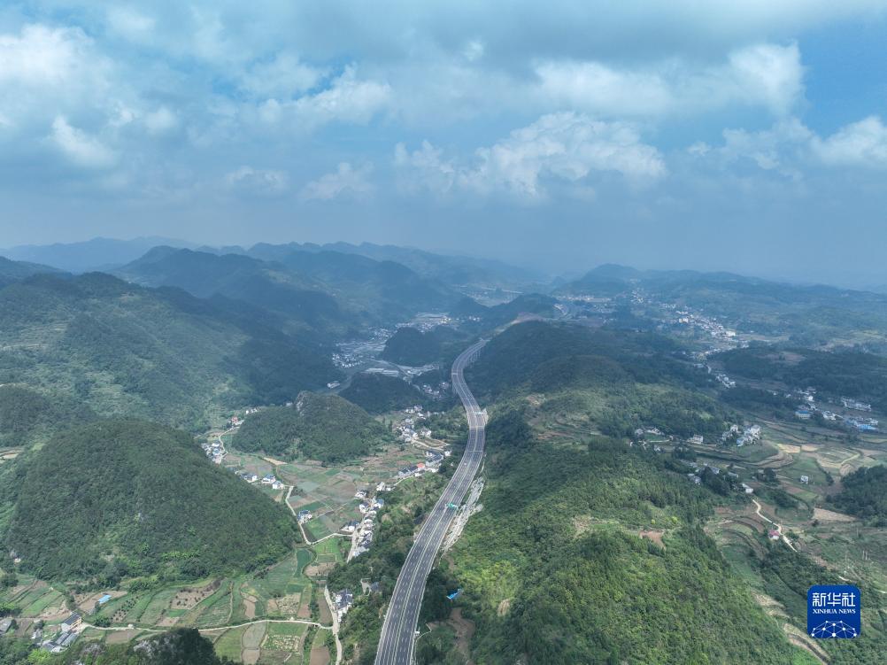 9月28日,在貴州省遵義市境內拍攝的蘭海高速重遵擴容工程新蒲段(無(wú)人機照片)。