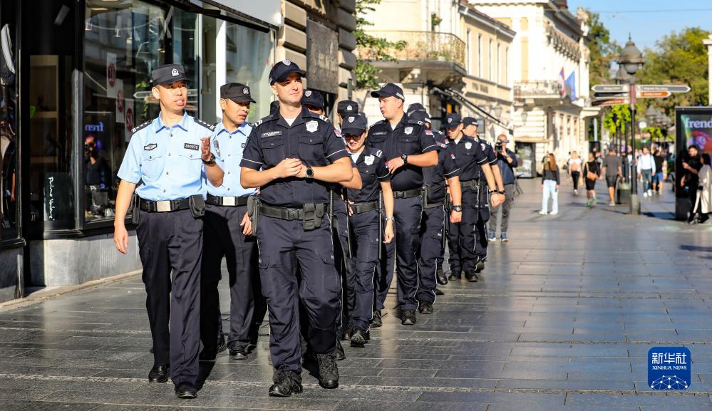 9月28日,在塞爾維亞首都貝爾格萊德,中塞兩國警察在街頭聯(lián)合巡邏。