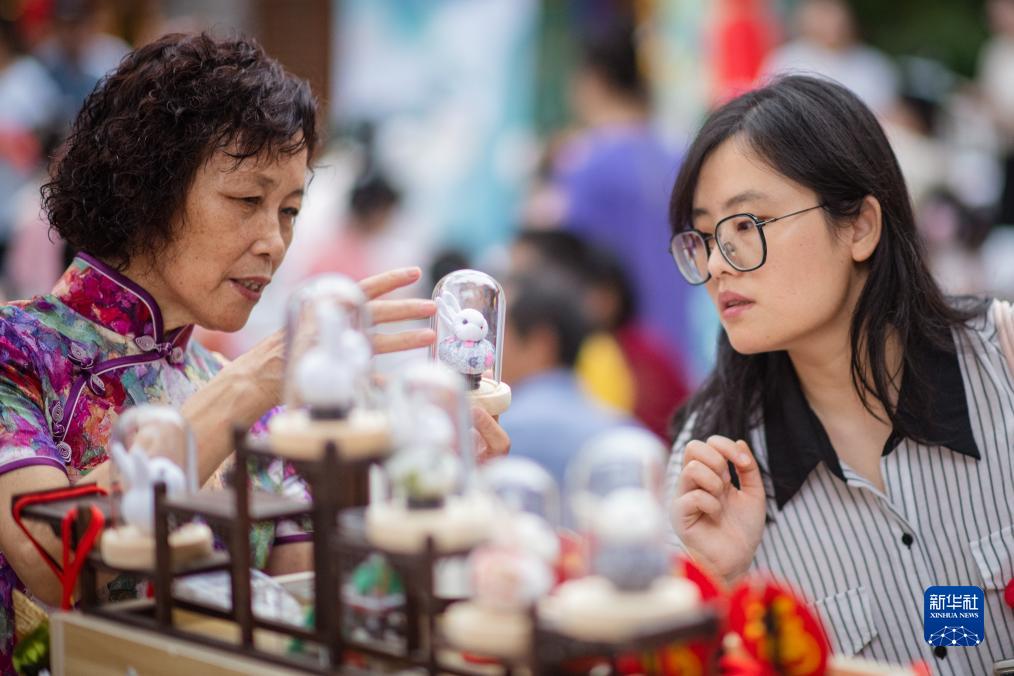 9月29日,游客在湖北省武漢市武昌區非遺“技·憶”節活動(dòng)現場(chǎng)觀(guān)看非遺工藝品。