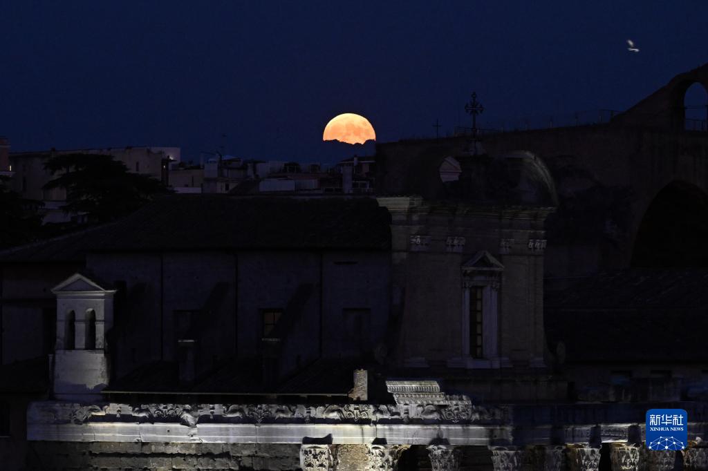 這是9月29日在意大利羅馬拍攝的月亮。