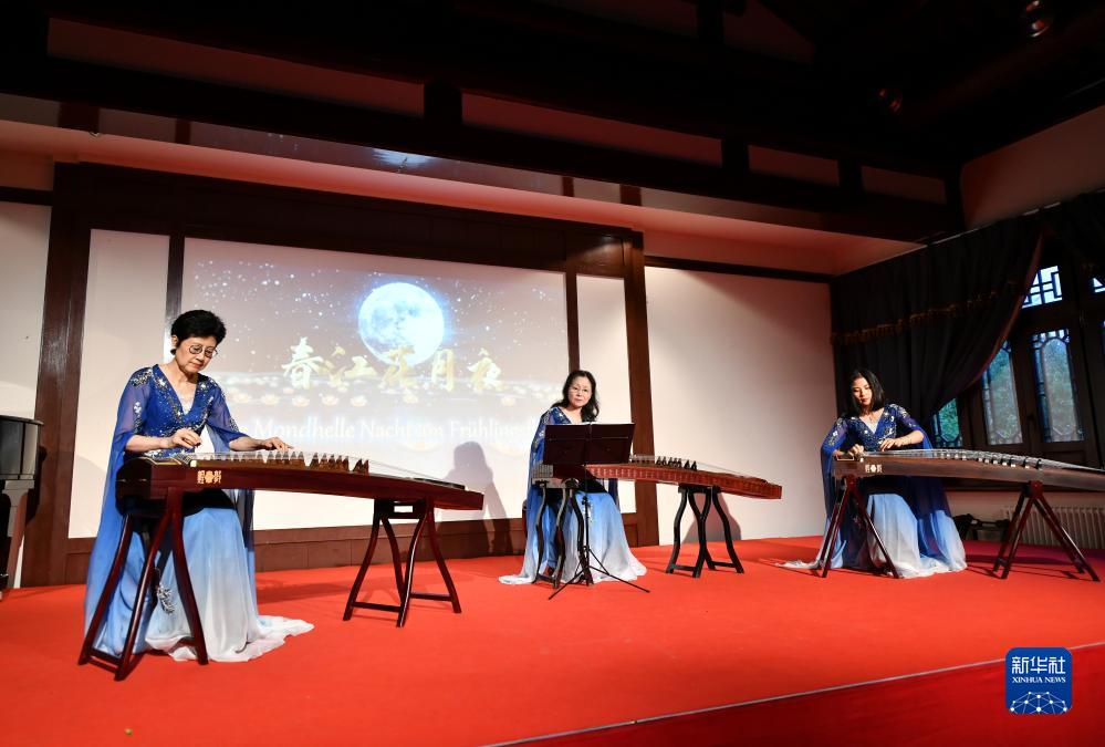 9月29日,在德國漢堡豫園,古箏愛(ài)好者在中秋晚會(huì )上演奏《春江花月夜》。
