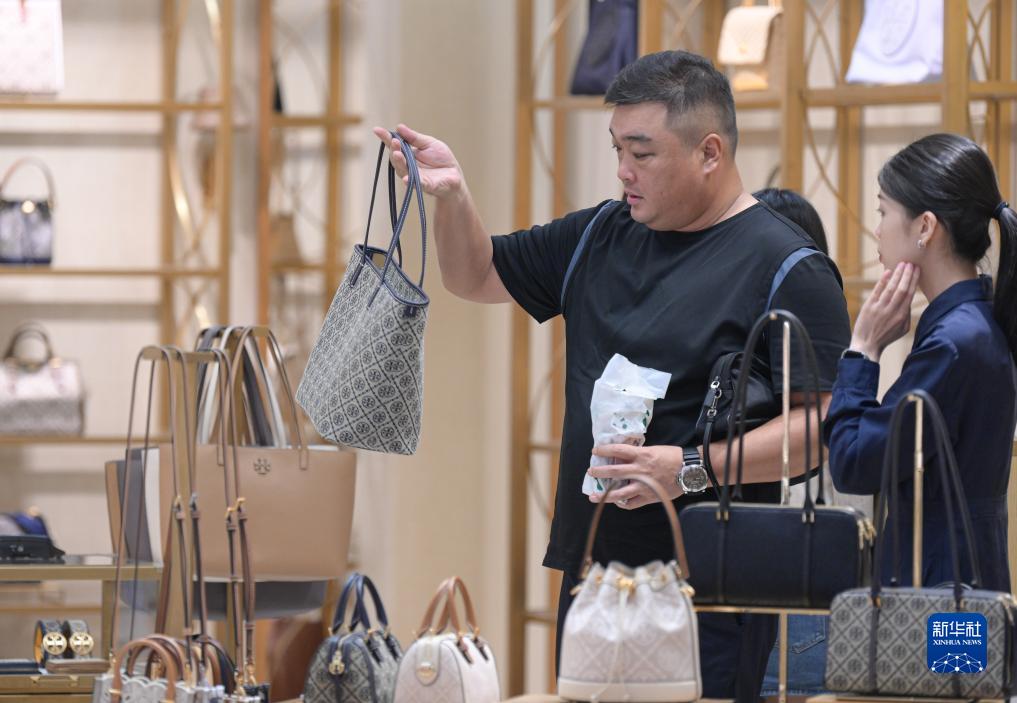 9月29日,消費者在中免集團??谌赵聫V場(chǎng)免稅店選購商品。