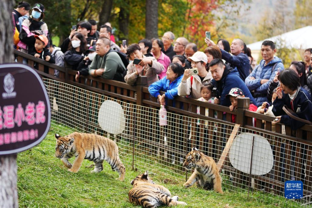 10月1日,在橫道河子東北虎林園,人們在觀(guān)賞幼虎。