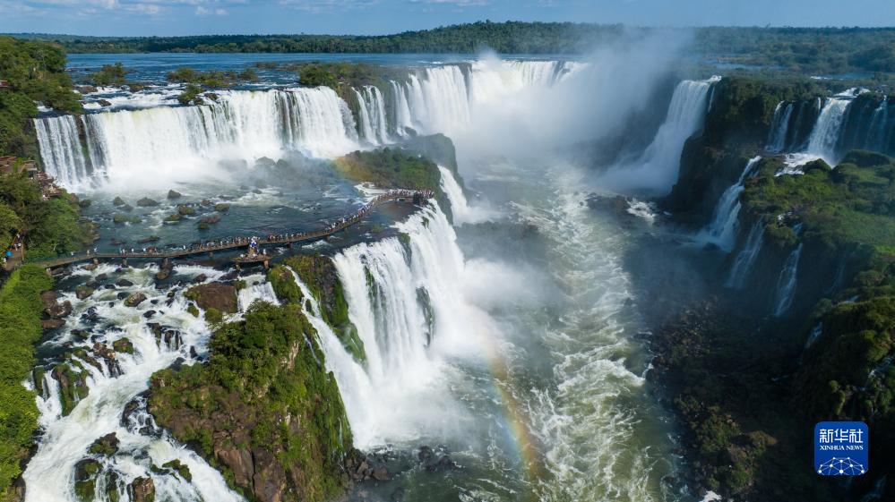 這是10月1日在巴西巴拉那州拍攝的伊瓜蘇大瀑布(無(wú)人機照片)。