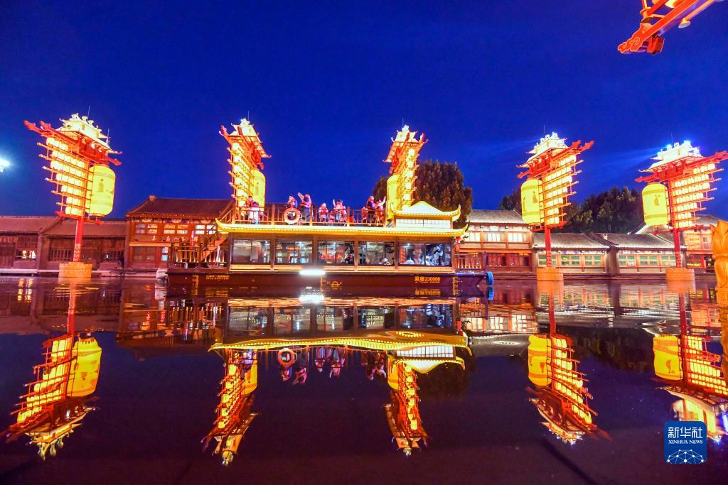 當日是國慶節,河北省唐山市豐南區河頭老街景區燈光璀璨,流光溢彩,市民和游客紛紛前來(lái)賞景、游玩,歡度佳節。