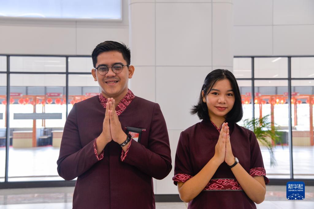 10月2日,在印度尼西亞雅加達哈利姆車(chē)站,乘務(wù)人員歡迎乘客和嘉賓。