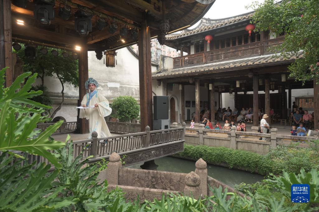10月2日,人們在福州三坊七巷水榭戲臺觀(guān)看閩劇演出。