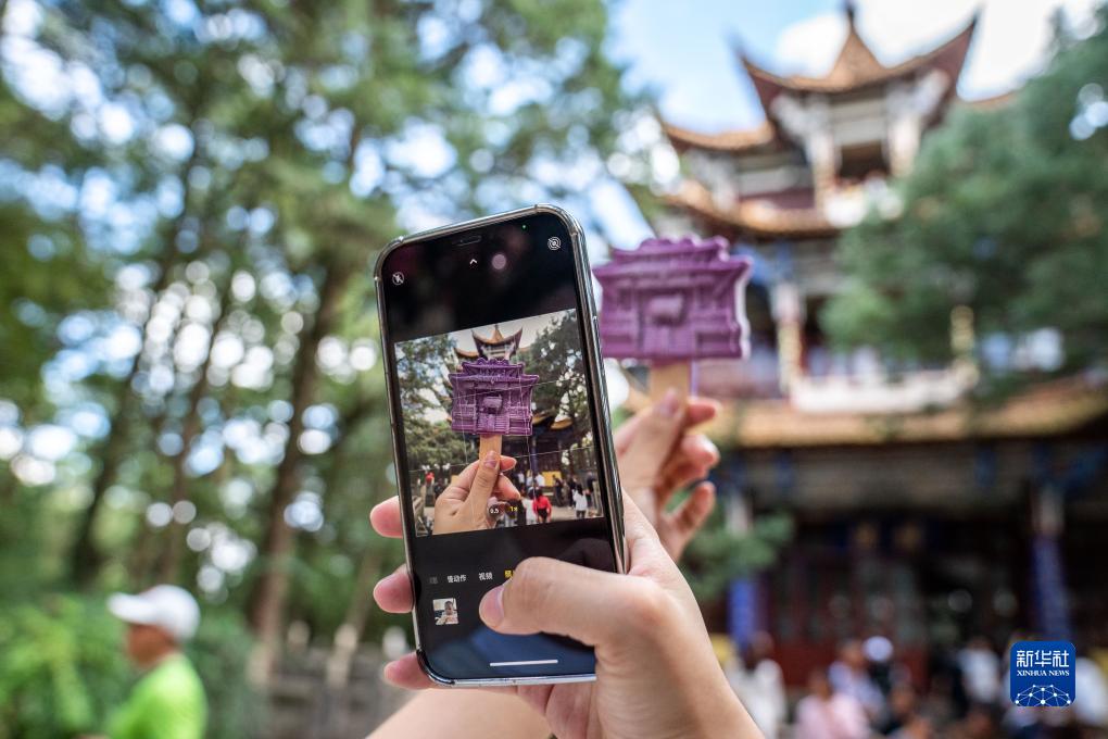 10月2日,游客在昆明市金殿風(fēng)景名勝區拍攝文創(chuàng )雪糕。