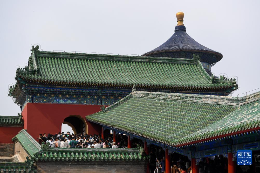 當日正值國慶假期,在北京天壇公園,來(lái)自各地的游客在這里參觀(guān)游覽。