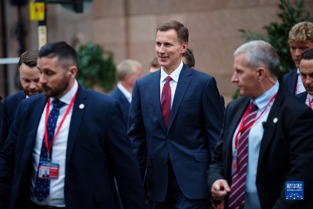 10月2日,在英國曼徹斯特,英國財政大臣杰里米·亨特(中)抵達保守黨年度大會(huì )現場(chǎng)。