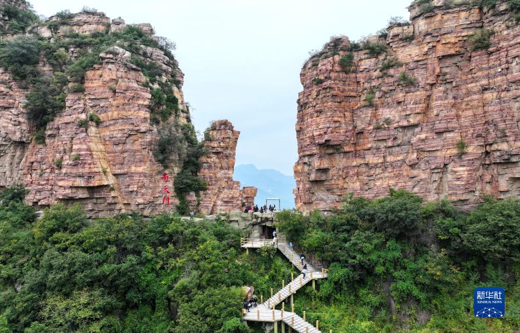 10月2日,游客在河北省武安市東太行景區觀(guān)光(無(wú)人機照片)。