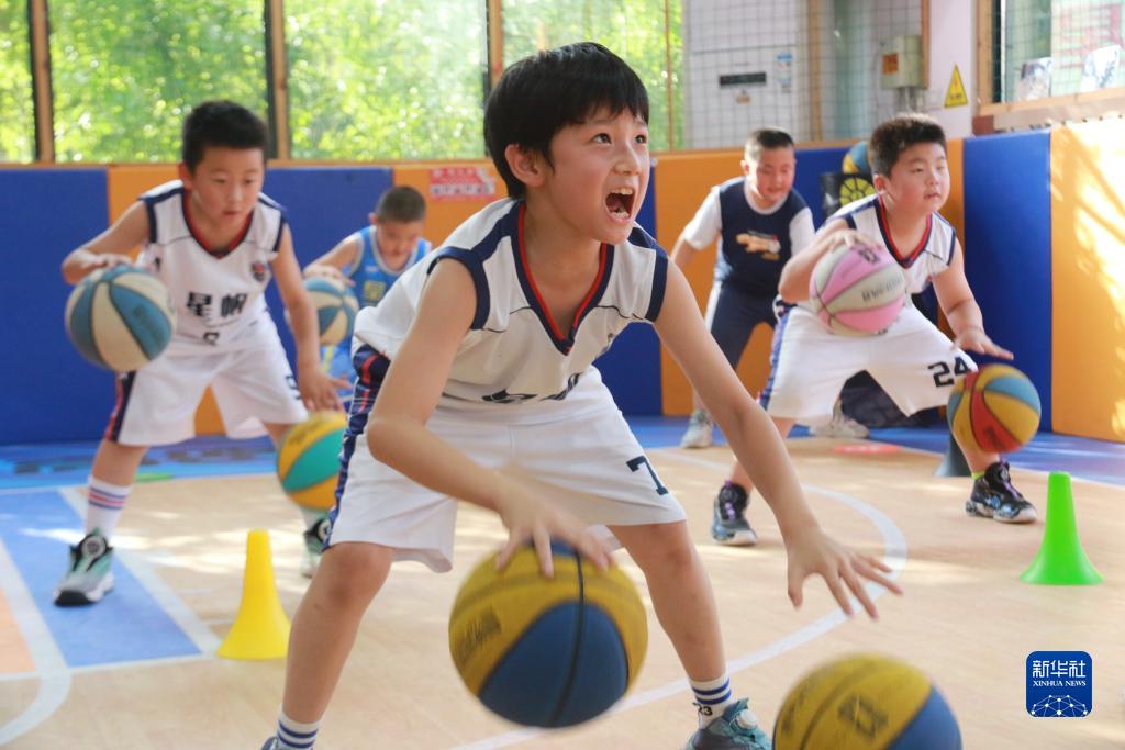 10月2日,孩子們在山東省高密市一籃球訓練營(yíng)進(jìn)行籃球基本功訓練。
