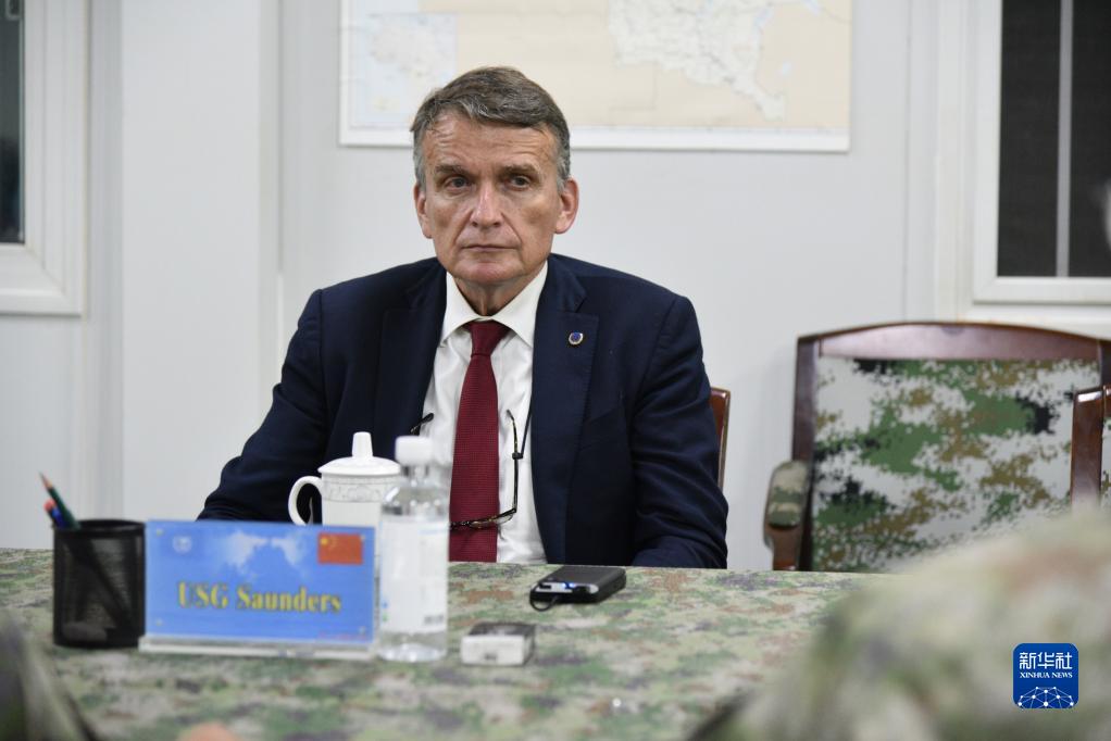 10月2日,在剛果(金)南基伍省首府布卡武的中國維和工兵分隊營(yíng)區,聯(lián)合國副秘書(shū)長(cháng)克里斯蒂安·桑德斯聽(tīng)取工作匯報。