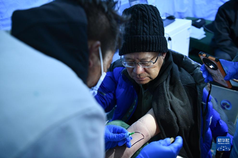 中科院院士朱彤(右)在采集血樣用于急進(jìn)高原人群健康研究(10月1日攝)。
