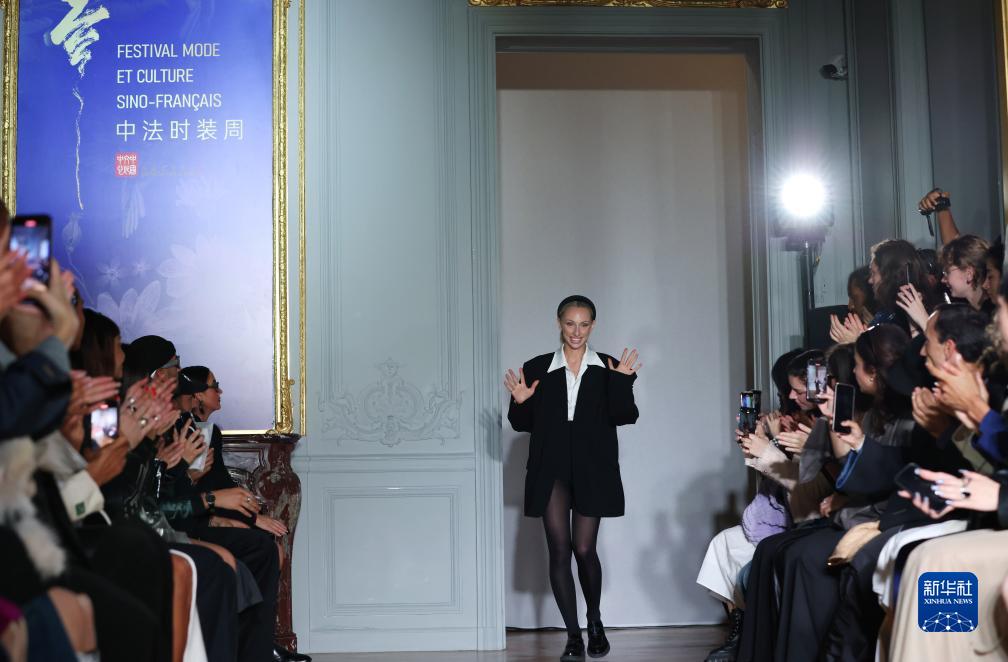10月3日,在法國巴黎舉行的首屆中法時(shí)裝周上,法國設計師Ariane Theunissen向觀(guān)眾致意。