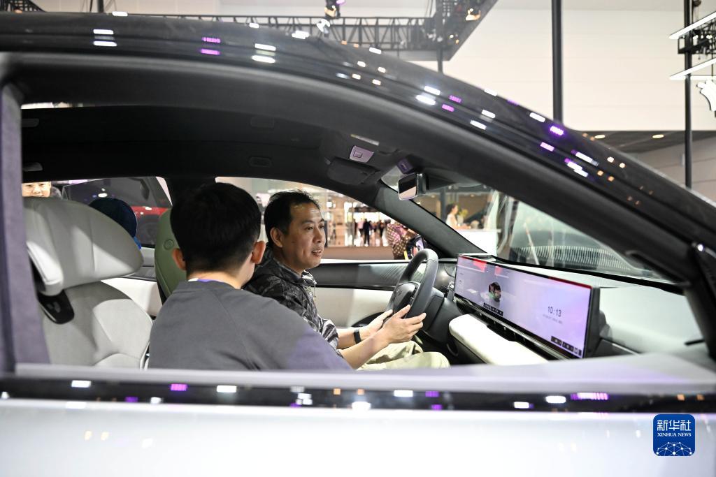 10月4日,參觀(guān)者在極越汽車(chē)展臺體驗。