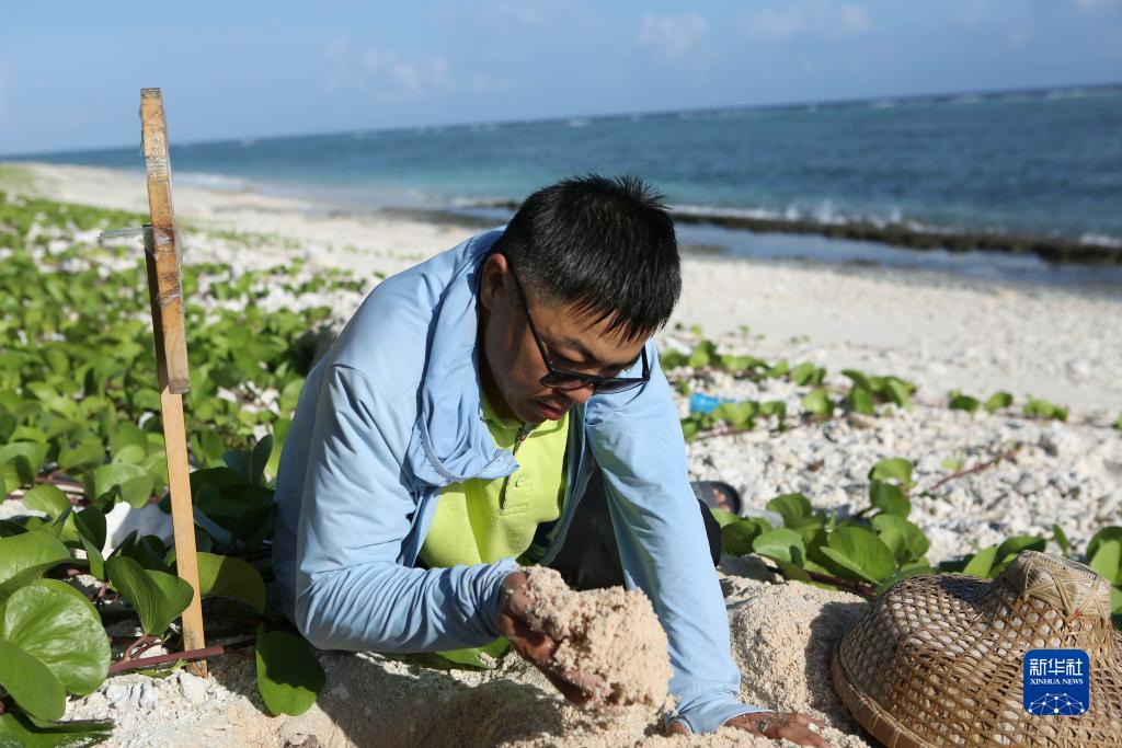 黃程是海南省三沙市七連嶼管委會(huì )北島社區居委會(huì )主任,也是北島海龜的守護者。為了更好地守護海龜家園,他不僅要進(jìn)行日常巡護、救助、登記等工作,還要定期清理海漂垃圾、種植固沙的羊角樹(shù)等等?!皪u礁生態(tài)好,海龜才會(huì )來(lái)產(chǎn)卵?!秉S程說(shuō)。