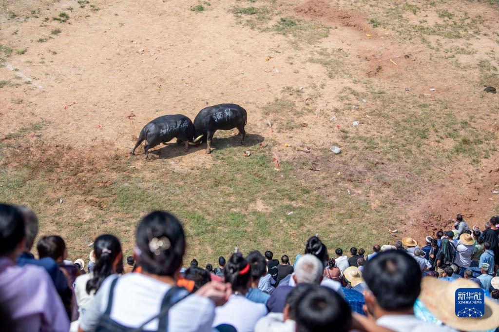 10月4日,人們在貴州省從江縣下江鎮觀(guān)看斗牛。