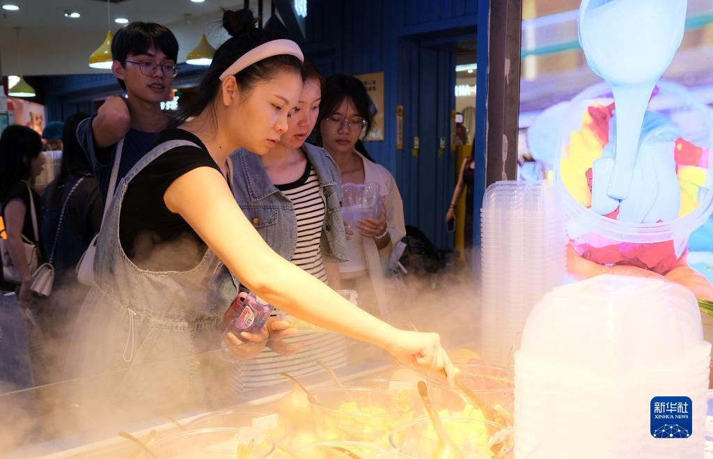 中秋國慶假日期間,廣西南寧市夜市人來(lái)人往,消費者絡(luò )繹不絕,帶火了當地夜經(jīng)濟。