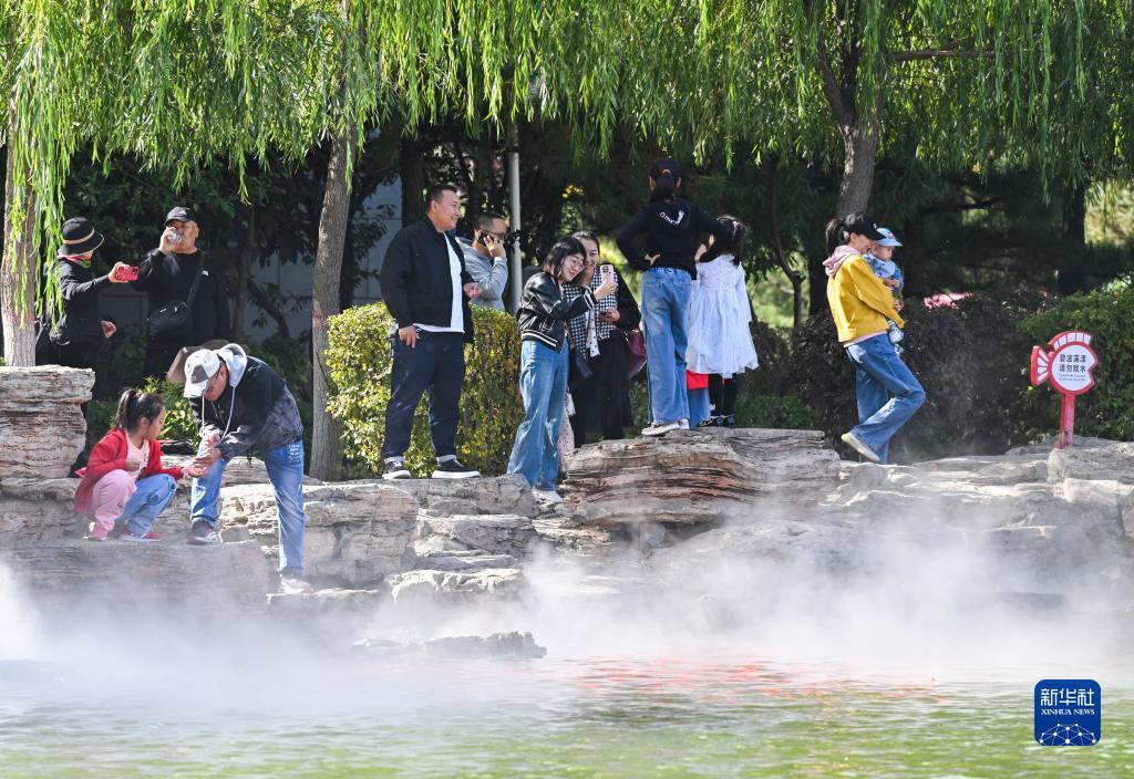 10月4日,游客在呼和浩特市新城區惱包村游玩。