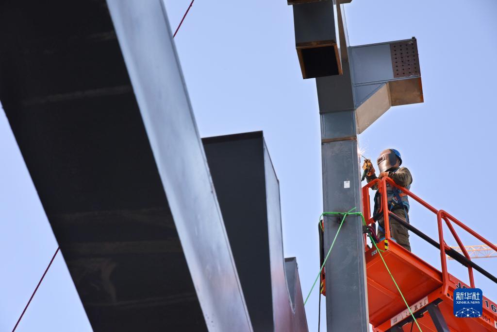 10月5日,中鐵建工建設者在項目工地上進(jìn)行鋼結構焊接。